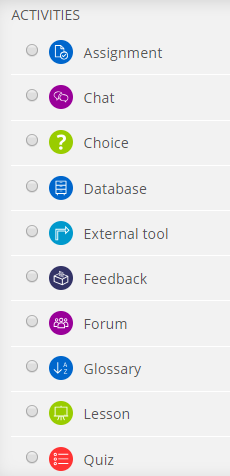 - SCORM package - enables SCORM packages to be included as course content