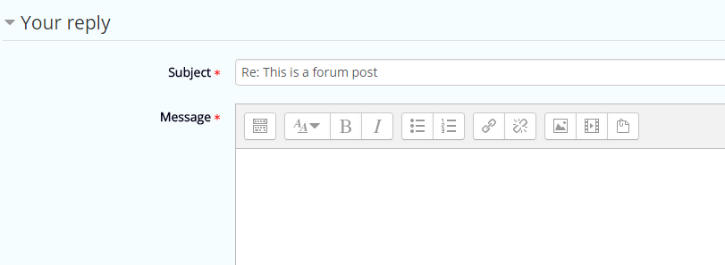 Figure: Post reply Your have created a reply to a forum topic, which will appear below the original post.