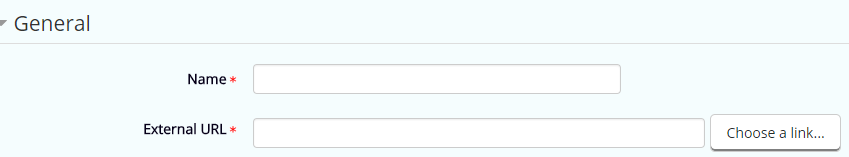 The Adding a new URL page will be displayed. - In the section General, fill in the required field Name which is marked with an asterisk.