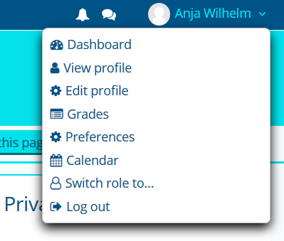 Log out of Karlifi Learning Platform Before you begin Make sure you are logged on to the Karlifi Learning Platform. Procedure In the top right corner of the page, click on your username. A drop-down menu appears: Figure: User menu At the bottom of the drop-down menu, click on Log out. ResultsYou are logged out of the Karlifi Learning Platform.
